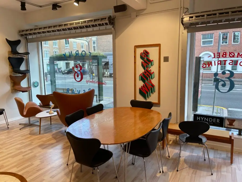 Der står mange 7’er stole derude. Vi hjælper virksomheder, restauranter og kantiner med at give deres klassiske møbler nyt liv.