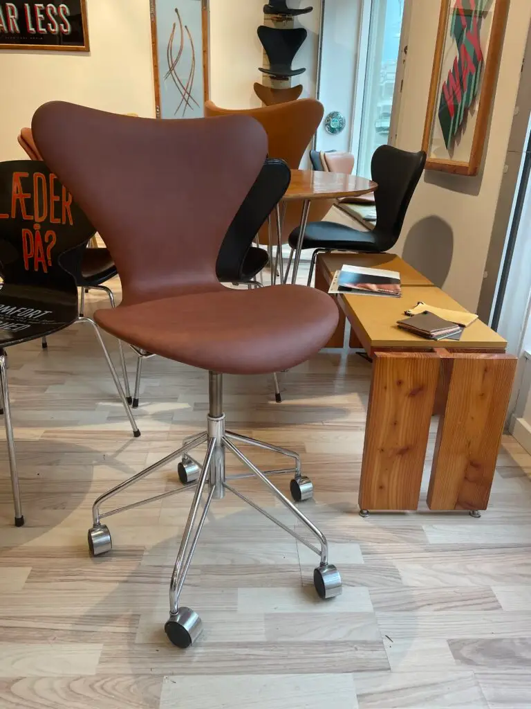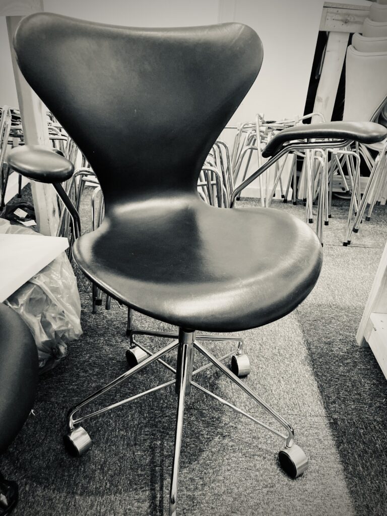 Hver uge reparerer jeg Arne Jacobsen 7’er stole for kunder på Frederiksberg og i København. Løse samlinger og slitage kan ofte reddes – uden at stolen mister sit udtryk.