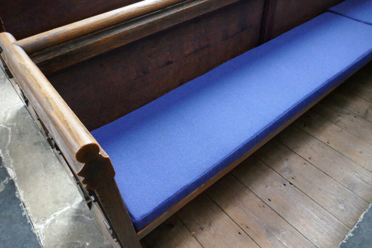 Vi fremstiller hynder til kirkebænke og knæfald, der understøtter rummet uden at dominere: